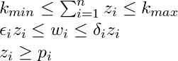 - Cardinality constraints: the number of assets included in the portfolio is bounded. We have a vector z of binary decision variables such that if asset i is in the solution, then zi = 1. The bound on the number of assets is given by two values kmin and kmax.